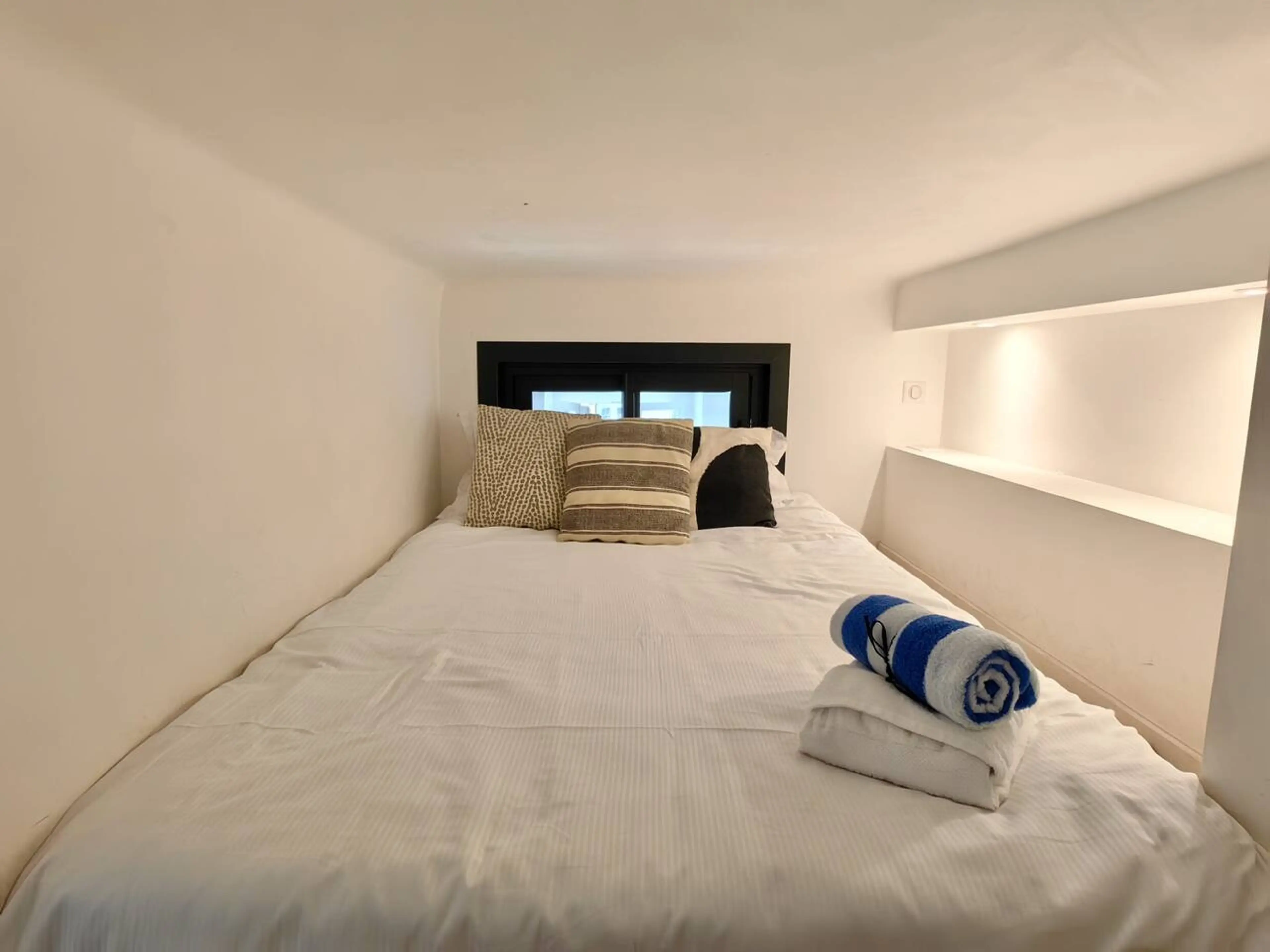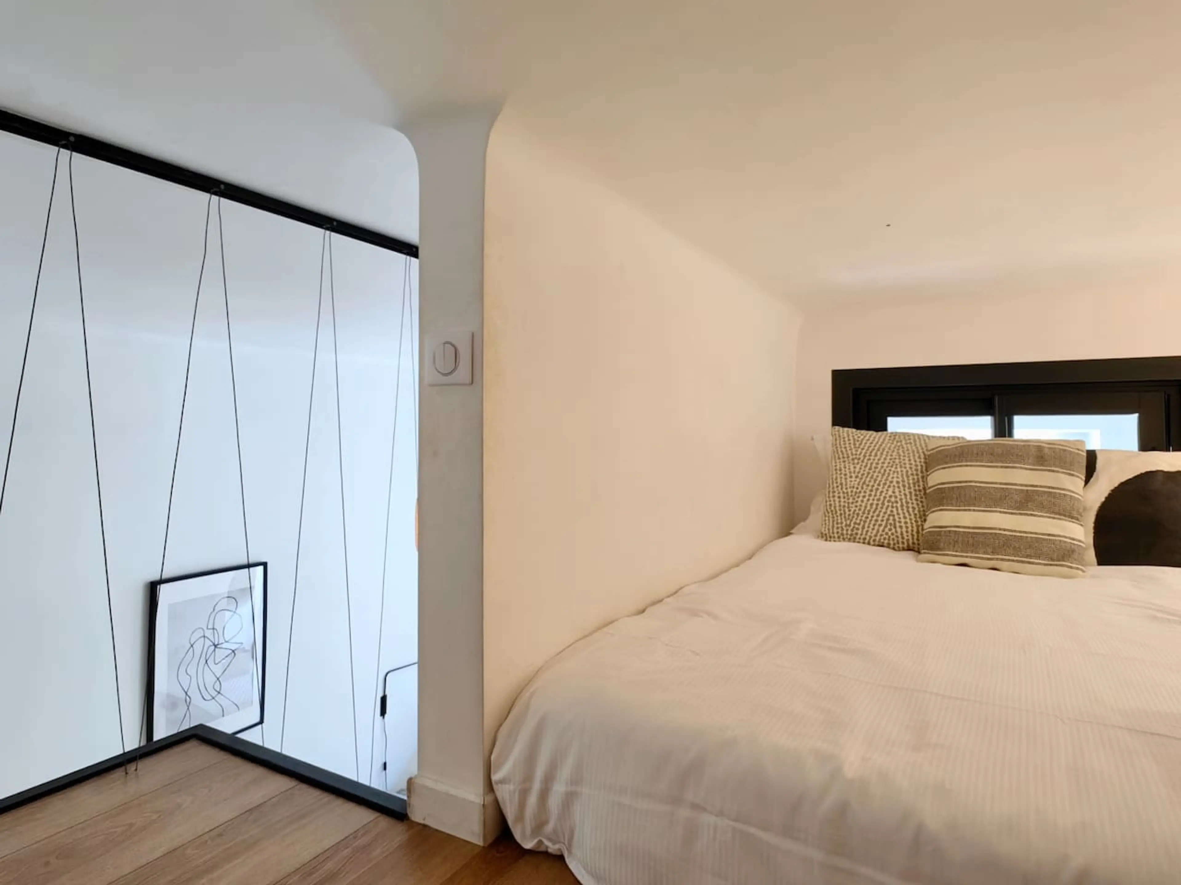 Welcome to this bright and quiet 35m² studio located on the first floor with elevator access. It features a mezzanine with a 140cm bed (ideal for a child or short stays), a queen-size sofa bed in the living room, and a semi-separate fully equipped kitchen. The bathroom includes an Italian-style walk...