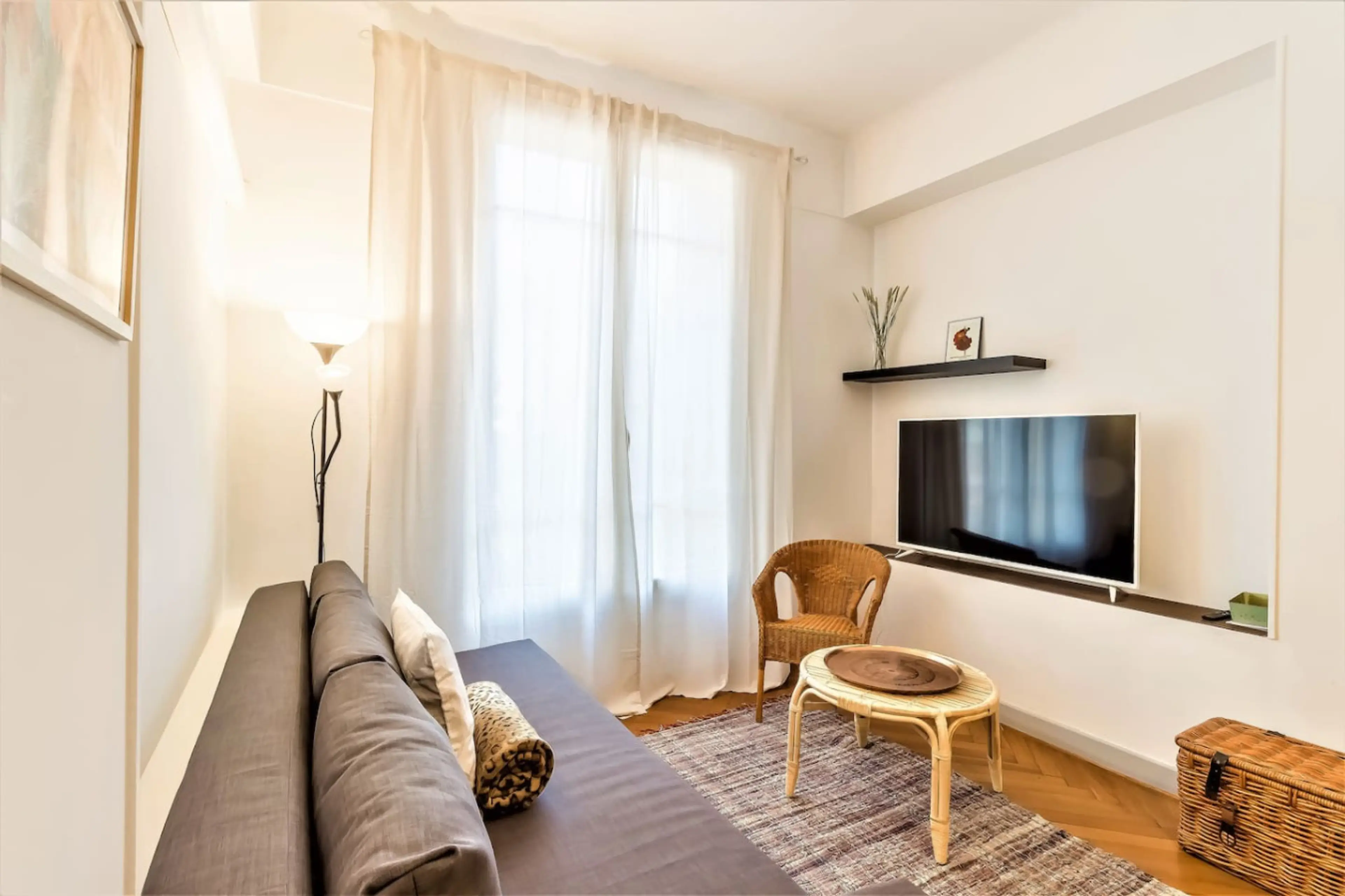 Charmant appartement de type loft, décoration soignée, en plein centre ville et à quelques mètres de la Promenade des Anglais. Charmant appartement de type loft à la décoration soignée, au 1er étage (avec ascenseur) d'un immeuble résidentiel, en plein centre ville et à quelques mètres de la Promen...